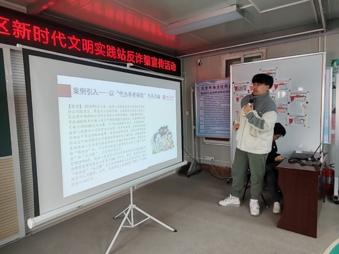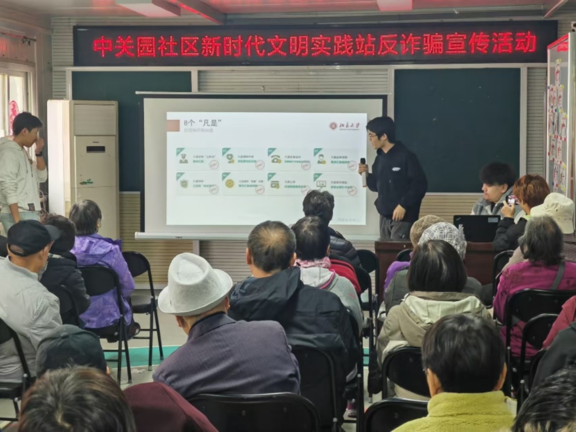 为提升老年人的防诈骗意识,保障他们的财产安全,信息管理系《信息管理劳动实践》课程小组的王文博、于汉清、林博、王泰宇、艾日克·斯干旦、李奎良等同学在孟凡老师的指导下,分别于2024年10月22日和11月8日与燕北园社区和中关园社区合作,开展了两次以反诈宣传为主题的劳动实践活动。这些活动旨在帮助老年人识别和防范日益猖獗的诈骗行为,提高他们的自我保护能力。