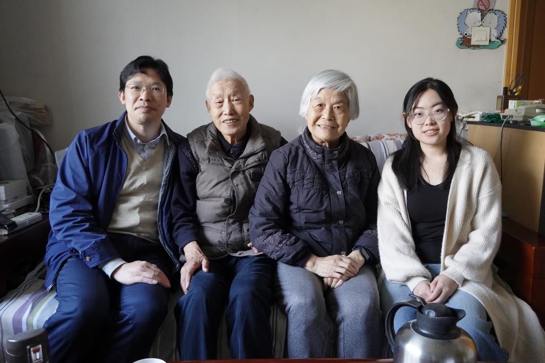 图 1 系党委书记李胜、学生代表李若溪与退休教师张文儒、关烨第夫妇合照