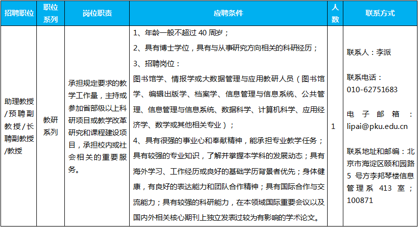 随着现代信息技术的发展,云计算、大数据、移动互联网、物联网等技术的快速发展为图情和信息管理学科的发展提供了新的发展契机,本系注重理论与实践结合、文化课与专业课并重,着重培养领导型并具有创新能力的专业应用人才,需要有大数据、分布式计算与系统等相关技术背景的教师来强化队伍建设。信息管理系到2020年,逐步形成包括图书馆学、情报学在内的完整一级学科体系,强化并培育编辑出版学(已设)、公共文化管理(拟设)、信息资源管理(拟设)、大数据管理与应用等新的学科增长点。