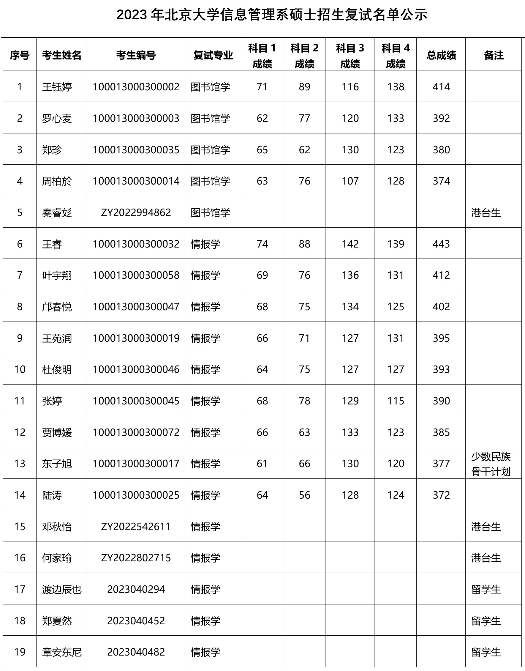 按照北京大学2023年硕士研究生招生复试与录取工作通知精神,信息管理系 复试分数线划定为: