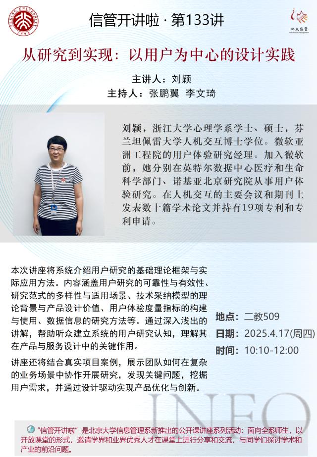 信管开讲啦·第133讲 | 从研究到实现:以用户为中心的设计实践