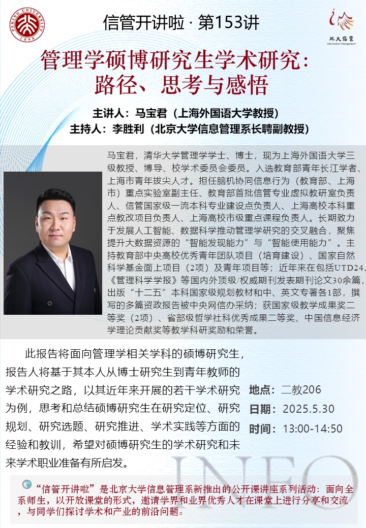 信管开讲啦·第153讲 | 管理学硕博研究生学术研究:路径、思考与感悟