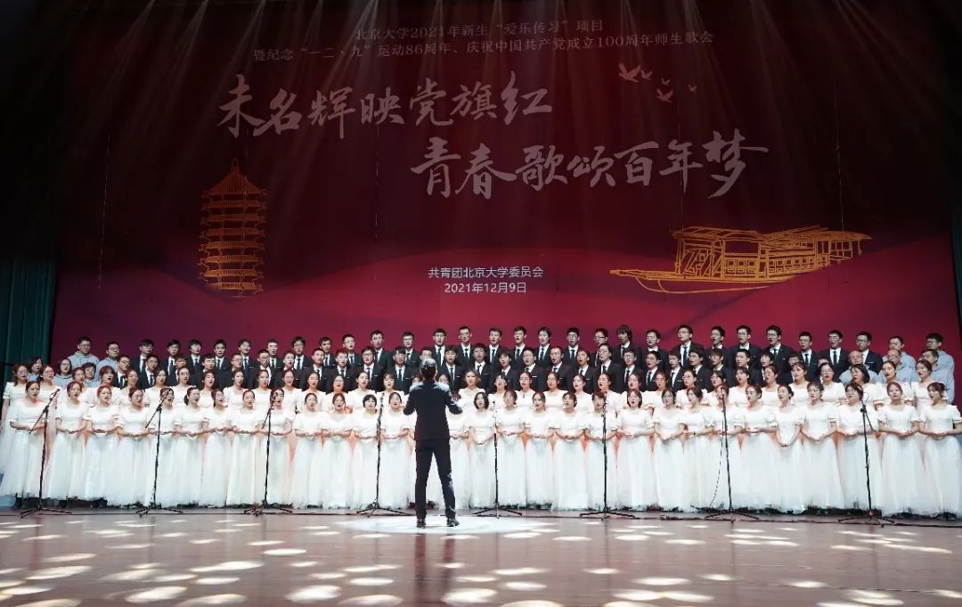 最终展演,每个人都用尽全力,以最好的一面迎接正式的演出。女生声部的婉转悠扬,男生声部的高亢激昂,交织汇成对祖国发展的歌颂,唱出万家灯火的繁荣。最终,我们呈现出了最完美的效果,在百周年纪念讲堂留下了属于自己的青春印记!