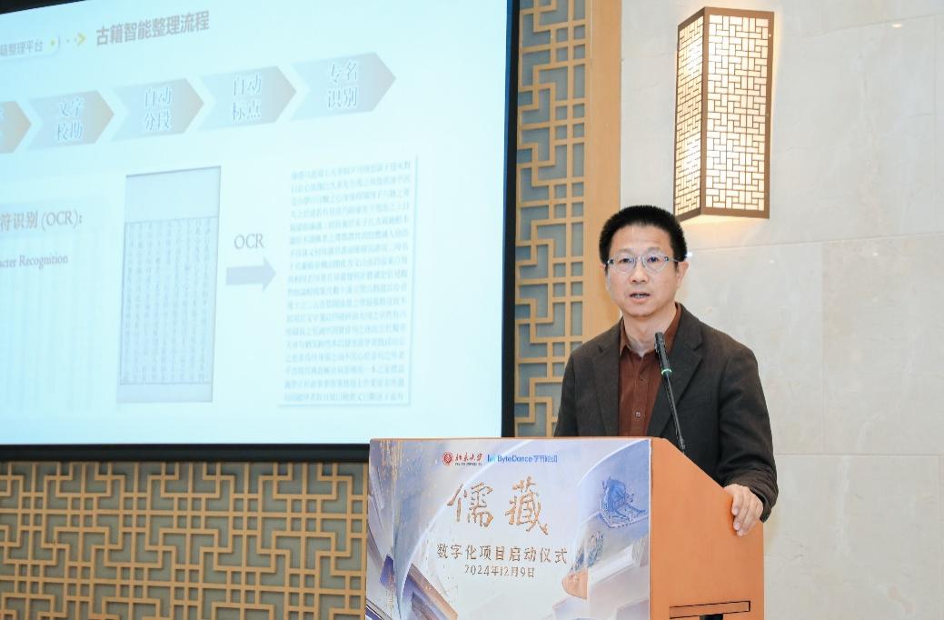 张羽介绍了字节跳动与北京大学在古籍领域的合作情况,并表示,字节跳动公司通过公益捐赠及提供识典古籍智能整理平台的技术支持全本《儒藏》的编纂,旨在帮助北大更高效便利地开展《儒藏》的编纂与研究工作。接下来,字节跳动将充分发挥自身的能力,根据《儒藏》整理的需求,进一步优化产品功能,支持好《儒藏》工程,与更多机构及专家们携手同行,持续助力古籍修复、数字化和活化,共同为古籍保护与传承创造更大的价值。