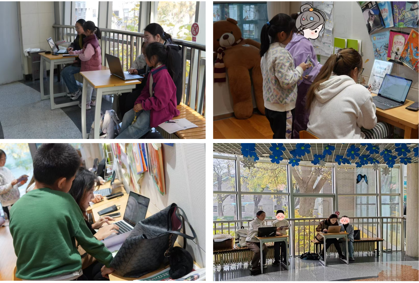 11月11日,活动正式启动后,信息管理系杨佳琪、王梓璇、冯冉、卢欣雨、裴清妍、石卓涵、王佳佳、张晨昱、张珈茄共9名本科生与硕士生作为志愿者,利用课余时间前往附小图书馆,协助参与活动的同学完成任务手册中的各项任务,并带领小朋友体验AI智能体在制作书籍过程中的应用。在志愿者的帮助下,小朋友对AI智能体产生了浓厚的兴趣,并顺利完成了活动手册中的任务。为期三周的活动中,同学们贡献的志愿服务时间共约66小时。