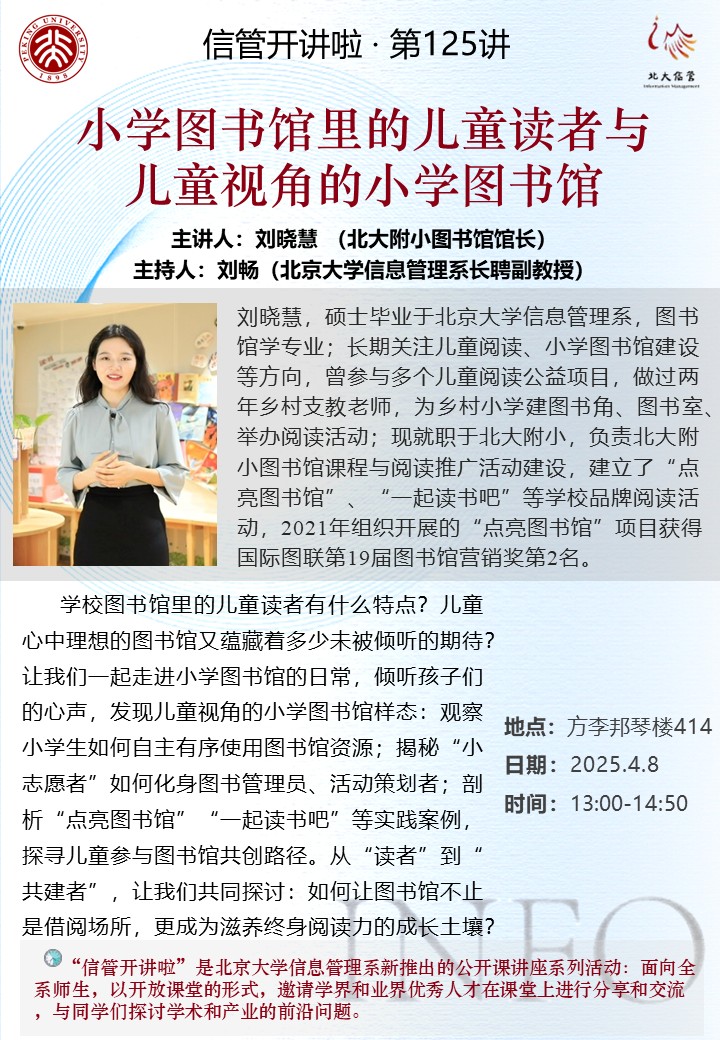 信管开讲啦·第125讲 | 小学图书管理的儿童读者与儿童视角的小学图书馆