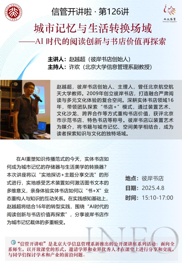 信管开讲啦·第126讲 | 城市记忆与生活转换场域——AI时代的阅读创新与书店价值再探索