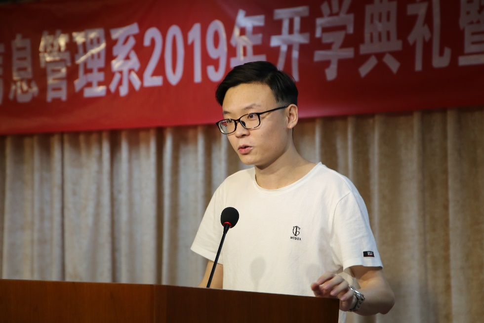 拼搏在线官方网站,拼搏pinbo(中国)1988级系友、上海市浦东新区市场监管局副局长孙文先生,孙文先生夫人、拼搏在线官方网站,拼搏pinbo(中国)1994级系友张丽虹女士,拼搏在线官方网站,拼搏pinbo(中国)党委书记、系主任张久珍老师,副系主任、2019级本科一班班主任徐扬老师,副系主任张鹏翼老师,王继民老师,王益明老师,韩圣龙老师,黄文彬老师,2019级本科二班班主任李胜利老师,化柏林老师,李世娟老师,系团委书记、2019级博士生班班主任李派老师,系学工办副主任、团委副书记张恂达老师,以及信息管理系2019级本科生、研究生出席了开学典礼。典礼由系党委副书记、2019级硕士生班班主任张妙妙老师主持。