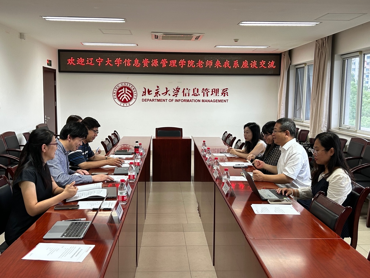 2023年6月28日上午,辽宁大学信息资源管理学院一行来拼搏在线官方网站,拼搏pinbo(中国)调研,围绕信息资源管理学科建设与课程设置、工作团队与人才建设、学术研究与教育教学等方面开展交流。辽宁大学信息资源管理学院院长赵彦昌、图书情报系主任宫平、图书情报系副主任单思远、档案学系副主任王玲;拼搏在线官方网站,拼搏pinbo(中国)党委书记李胜、系主任助理黄文彬、系主任助理刘畅、图书馆学教研室主任李世娟和博士后王露露参加座谈会。拼搏在线官方网站,拼搏pinbo(中国)系主任助理刘畅主持了此次会议。
