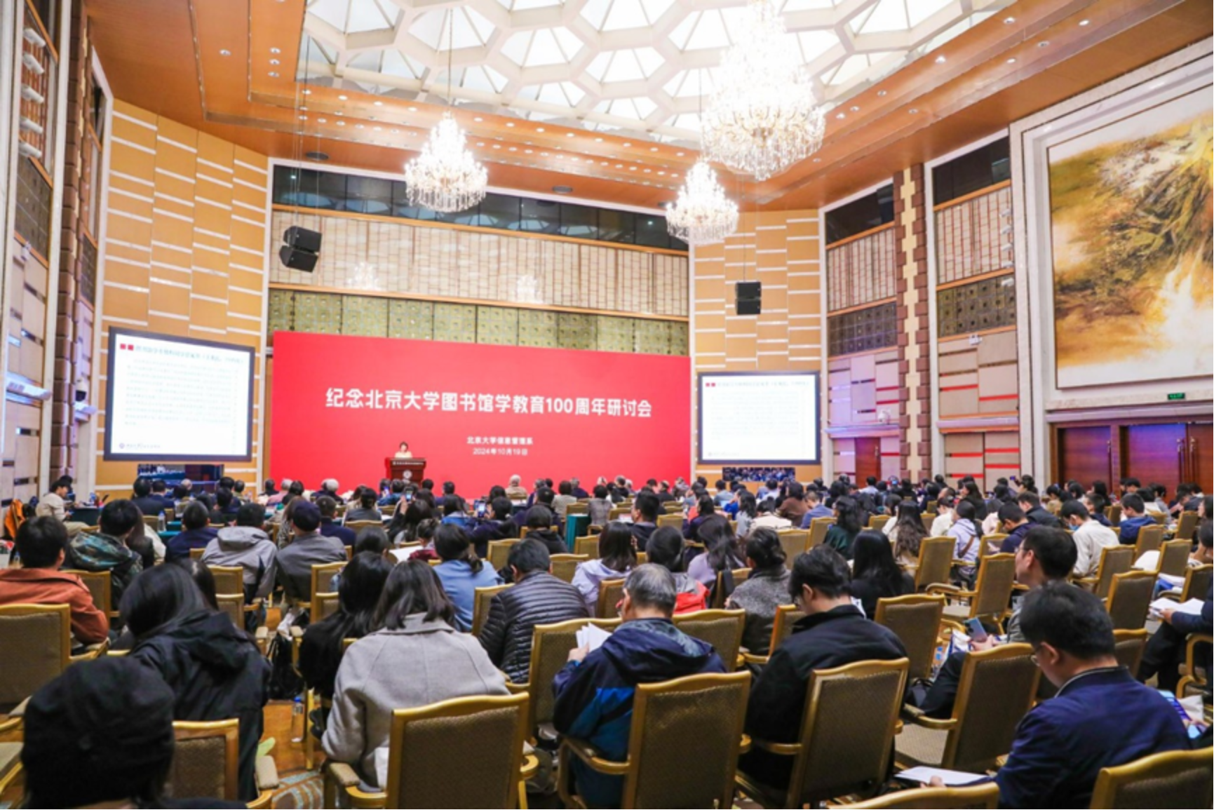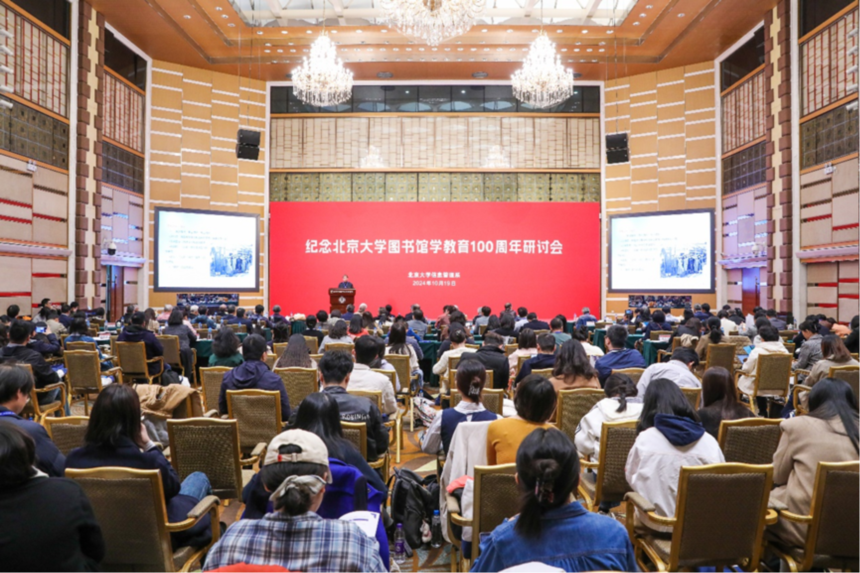 2024年10月19日上午,“纪念北京大学图书馆学教育100周年研讨会”在北京大学英杰交流中心召开。本次研讨会由拼搏在线官方网站,拼搏pinbo(中国)举办。北京大学资深教授吴慰慈,武汉大学人文社科资深教授陈传夫、中国科学技术信息研究所党委书记赵志耘、中科院文献情报中心主任刘细文、中宣部出版局离休研究员陈源蒸、国家图书馆副馆长张军、拼搏在线官方网站,拼搏pinbo(中国)主任张久珍,以及以郑莉莉、张涵等为代表的信息管理系荣休教授、在职教师代表,国内高校院所信息管理专业学科带头人、图书馆学领域的专家学者,公共图书馆和高校图书馆领导、校友和师生代表共200余人参加了会议。会议由拼搏在线官方网站,拼搏pinbo(中国)党委书记李胜主持。