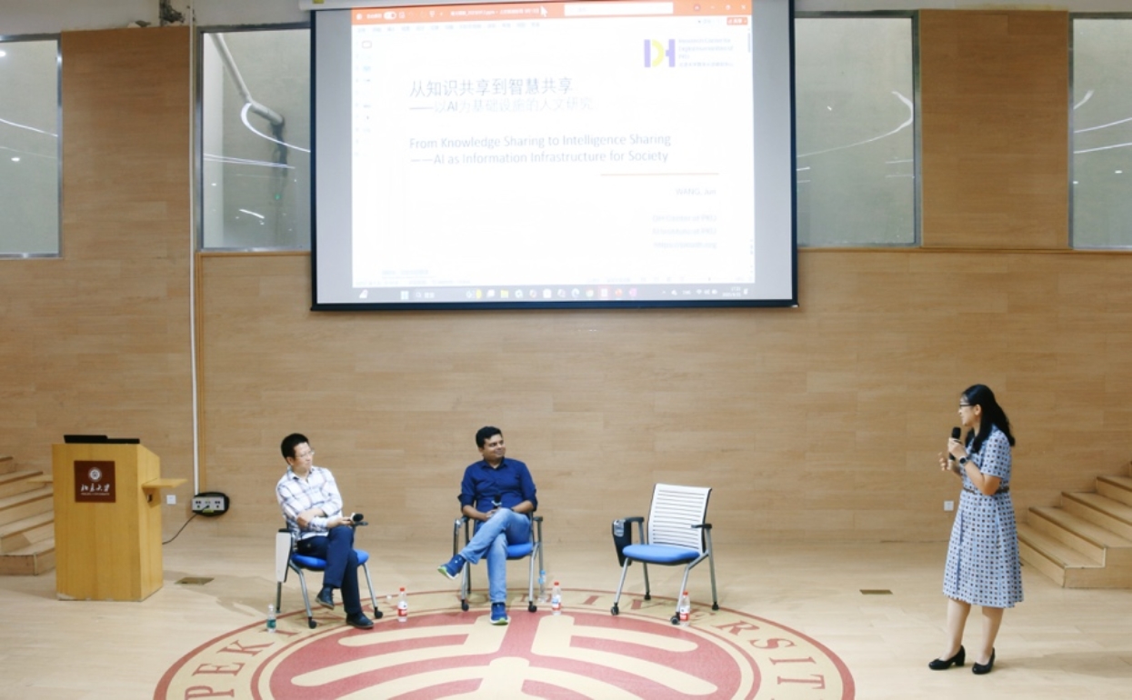 王军教授分享“从知识共享到智慧共享——以AI为基础设施的人文研究”,介绍了由北京大学数字人文研究中心研发的数字人文平台“吾与点”(Wu-Yu-Dian)。平台支持学者基于自身研究资料构建智能体,能够将文本、图像等资源转化为动态的交互式知识服务。通过具体案例,王军教授展示了人文学科研究成果如何超越传统的出版物形式,以图谱、表格、图像乃至智能体等形式呈现,从而更主动地服务于学术交流与社会应用,这一创新对依赖出版物的传统学术模式提出了具有挑战性的新路径,引发了与会师生们对未来学术研究范式的深入思考。